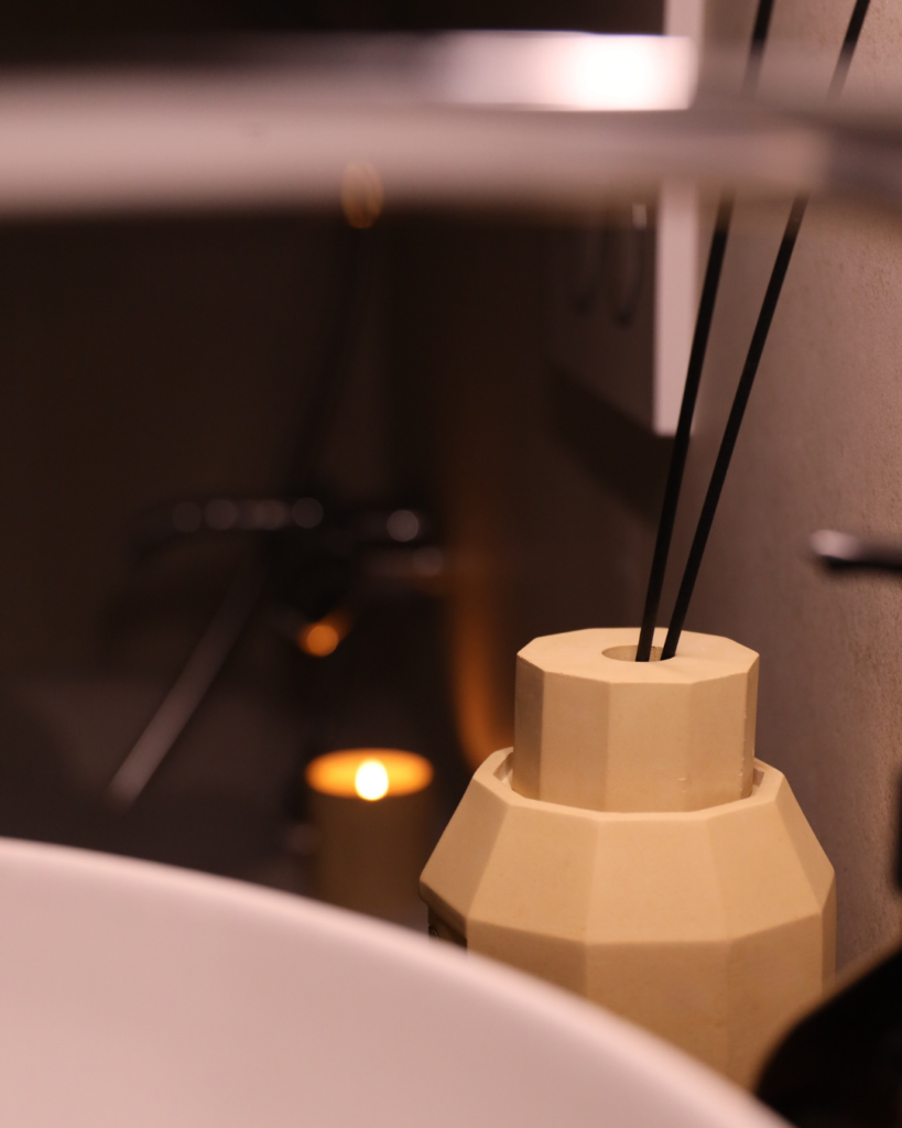 Étape 1 : Commencez par l’entrée. Dans un hôtel, le lobby est le premier contact — et le plus important. Chez vous, l’entrée joue le même rôle. Un diffuseur à roseaux dans votre hall ou couloir d’entrée définit l’atmosphère de votre maison dès les premiers pas. C’est le point de transition le plus puissant olfactivement.