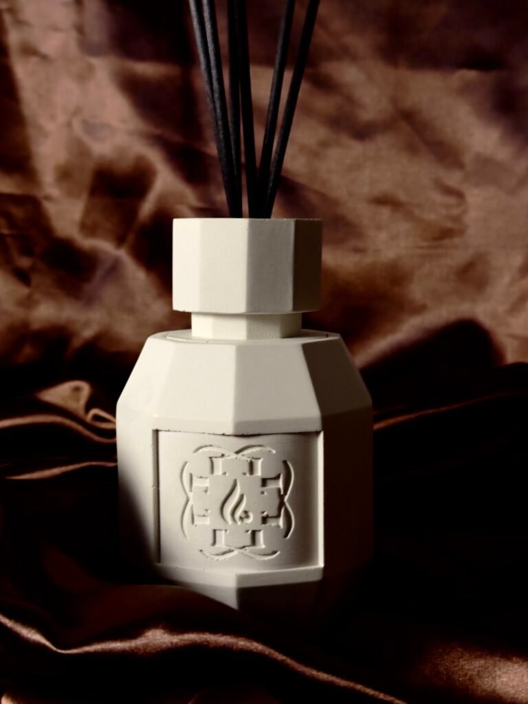 Our diffusers are crafted using a mineral-based eco-resin, chosen for its architectural qualities rather than ornamentation. This material allows us to reproduce the depth, texture, and visual calm of natural stone while offering durability and controlled porosity.
