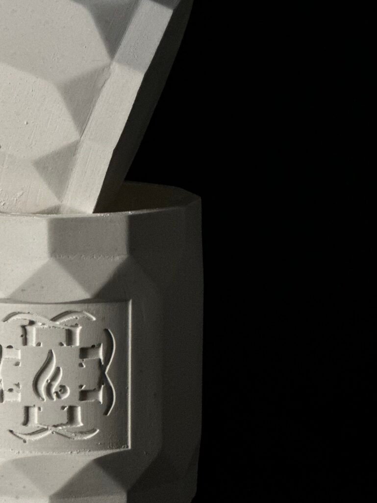 This candle collection is inspired by proportions and geometry. Known as the tale of twelve, each flat surface is designed at a 30° angle to subtly make a step towards forming a circle.