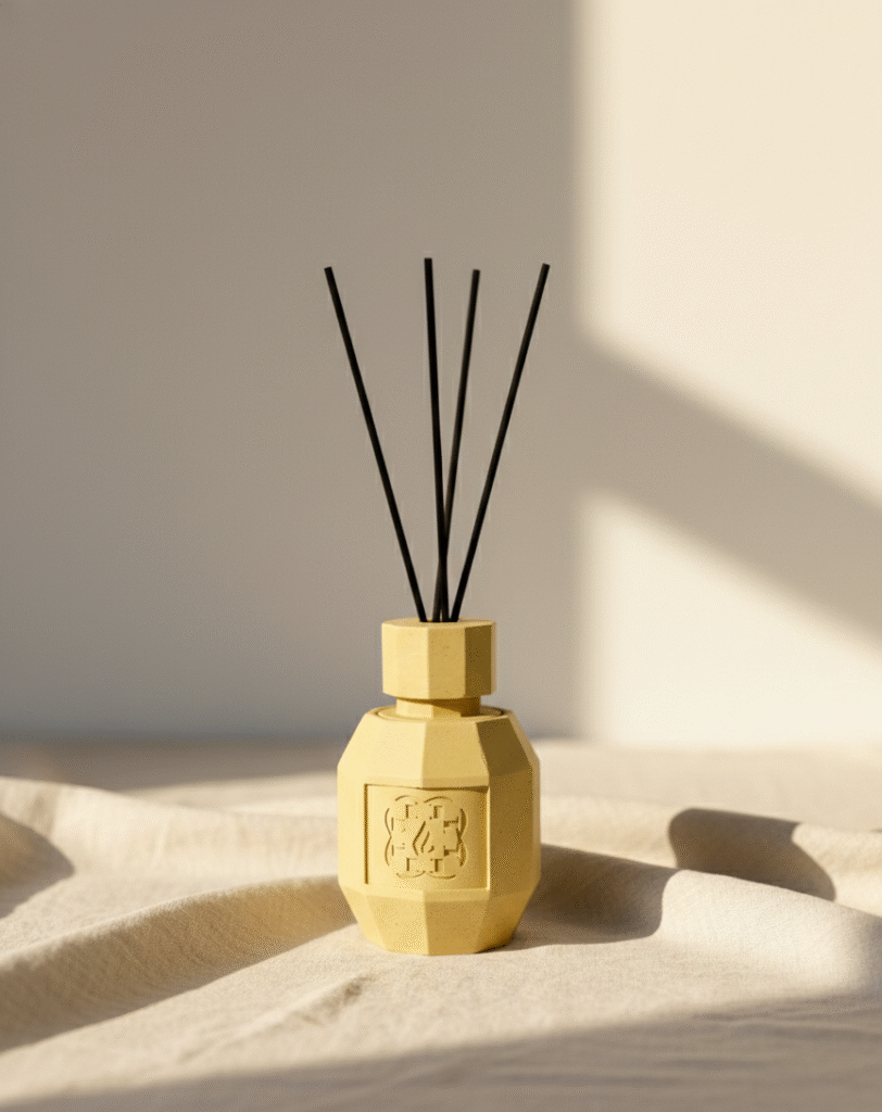Placed within a space, the sandstone diffuser does not seek attention. It anchors the room visually, much like a stone wall or column — stable, reassuring, and enduring.